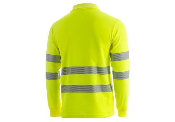 • Monochrome high-visibility long sleeve polo shirt made of cotton and polyester fabric. • On the one hand, it preserves the soft nature of cotton and on the other hand, the strength and durability of polyester. • The garment has mesh fabric in the armpits which helps the rapid evaporation of sweat. • It has 3 plastic buttons on the collar. • A chest strap with Velcro closure. • The collar and cuffs are made of ribbed fabric. • It has 2 segmented gray/silver reflective bands that surround the torso. • Wash at maximum temperature 40º – Can be ironed maximum 150°C -Do not use bleach – Does not allow dry cleaning – Do not use dryer – Max 25X.