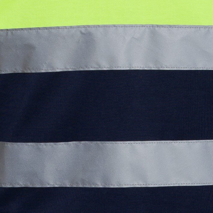 • High visibility long sleeve polo made from cotton and polyester blend. • On one side it retains the softness of cotton and on the other the durability and resistance of polyester. • The garment features mesh fabric in the armpits which aids in rapid sweat evaporation. • Features 3 plastic buttons on the collar in a contrasting color and a chest pocket with Velcro closure. • The collar is made from ribbed fabric in the same contrasting color as the lower part of the garment. • Equipped with 2 gray/silver reflective bands that encircle the torso and sleeves. • Wash at maximum temperature 40º – Cannot be ironed – Do not use bleach – Not suitable for dry cleaning – Do not use a dryer – Max 25X.