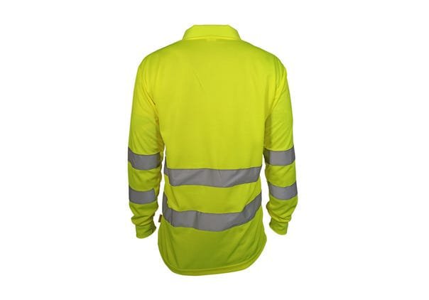 • High visibility long sleeve polo made from bird-eye technical fabric that facilitates breathability and equips the garment with ideal functional features for performing any work under medium/high heat conditions. • The garment has mesh fabric in the armpits which aids in rapid sweat evaporation. • Features 3 plastic buttons on the collar in fluorescent color and a chest pocket with Velcro closure. • The collar is made of ribbed fabric in the same contrast color as the rest of the garment. • Equipped with 2 gray/silver reflective bands that encircle the torso and sleeves. • Wash at maximum temperature 40º – Cannot be ironed – Do not use bleach – Not suitable for dry cleaning – Do not use a dryer – Max 25X.